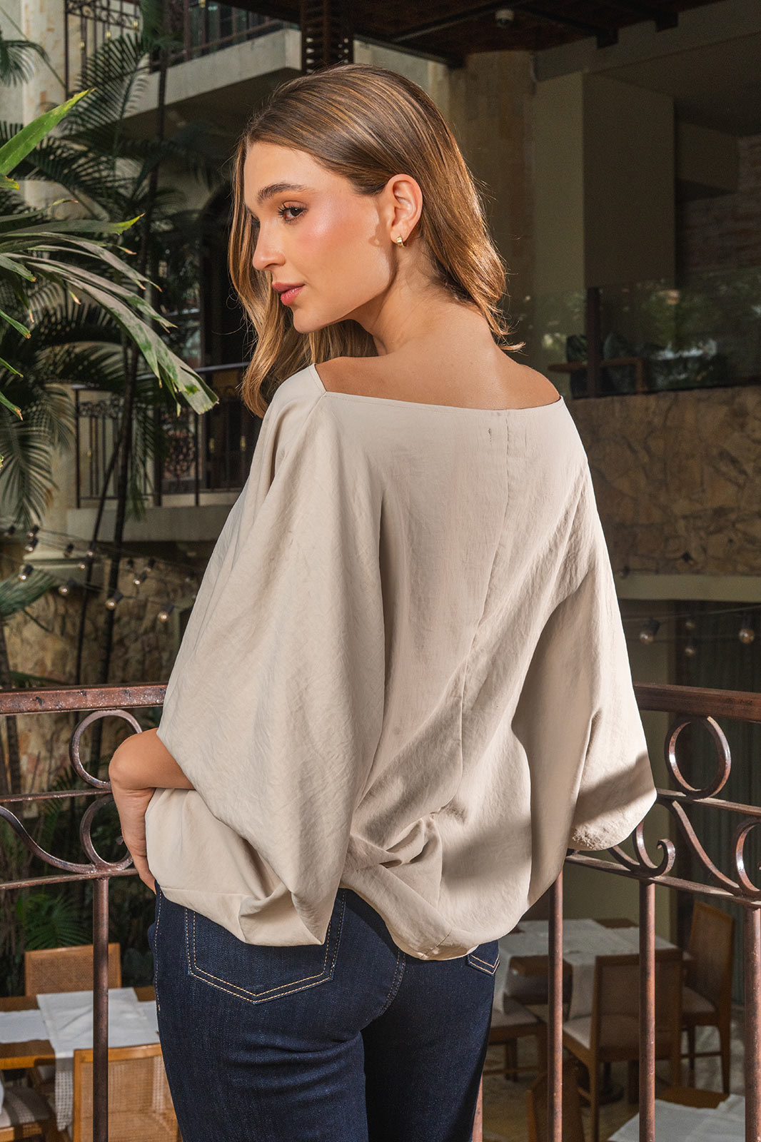 Blusa escote bandeja, silueta amplia, 100% microfibra