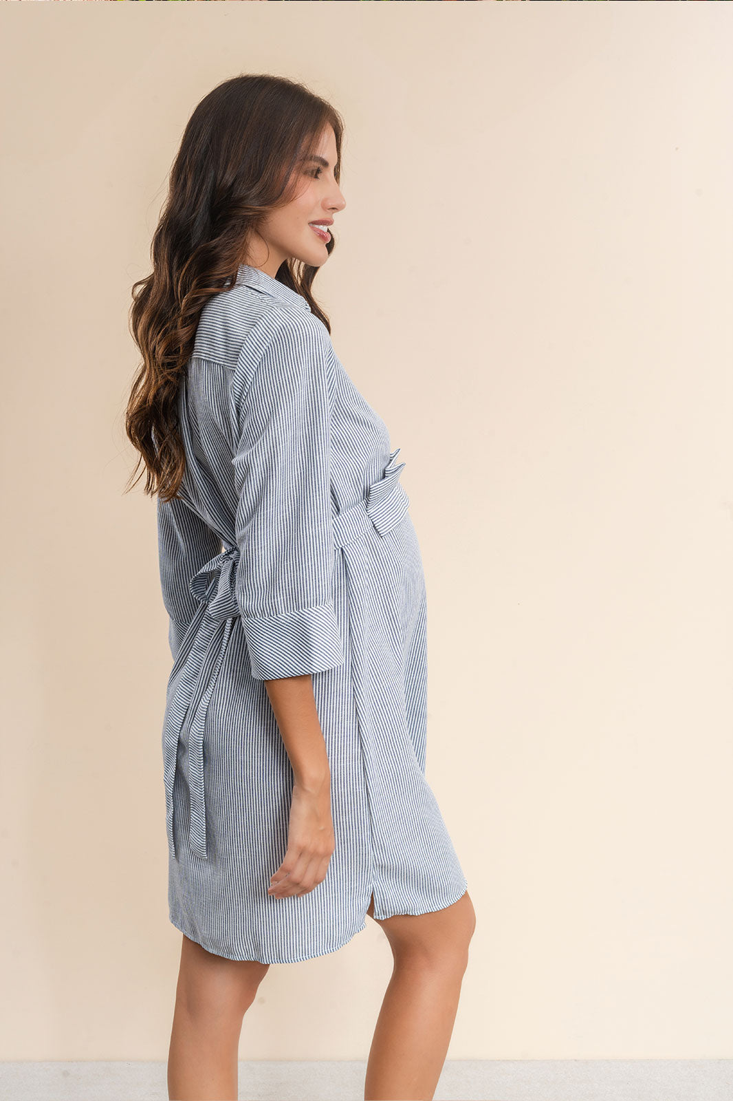 Vestido de maternidad camisero, con cinturón prensado.