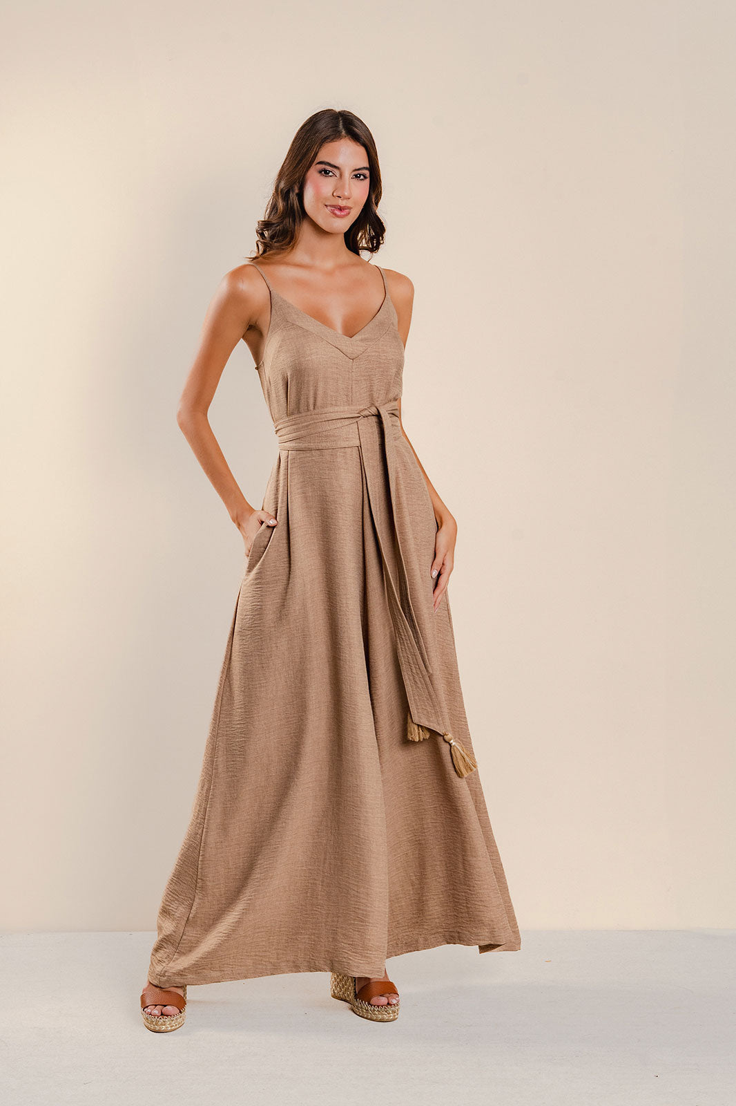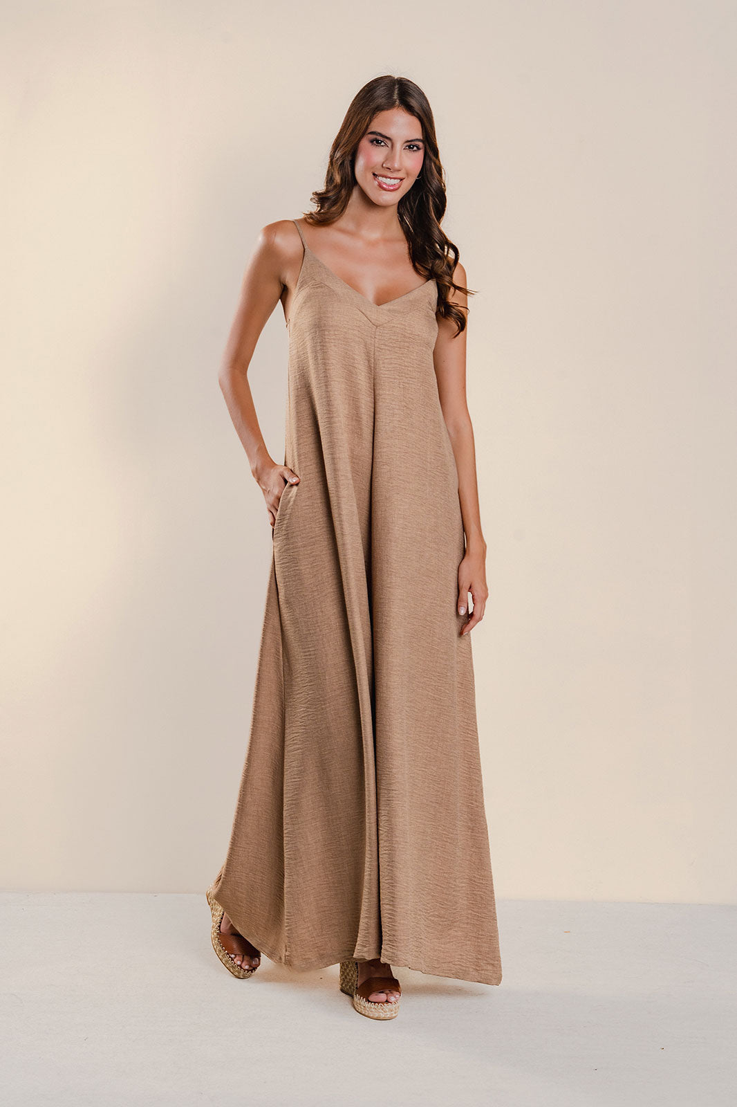 Enterizo  amplio de tiras y cinturón